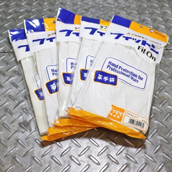 - 【新潟発】未使用 MITANI フィットン 5セット ② 豚表革 革手袋 サイズフリー Fit On 豚皮 シロ まとめ売り 作業用 皮手袋 中古 工具 北陸