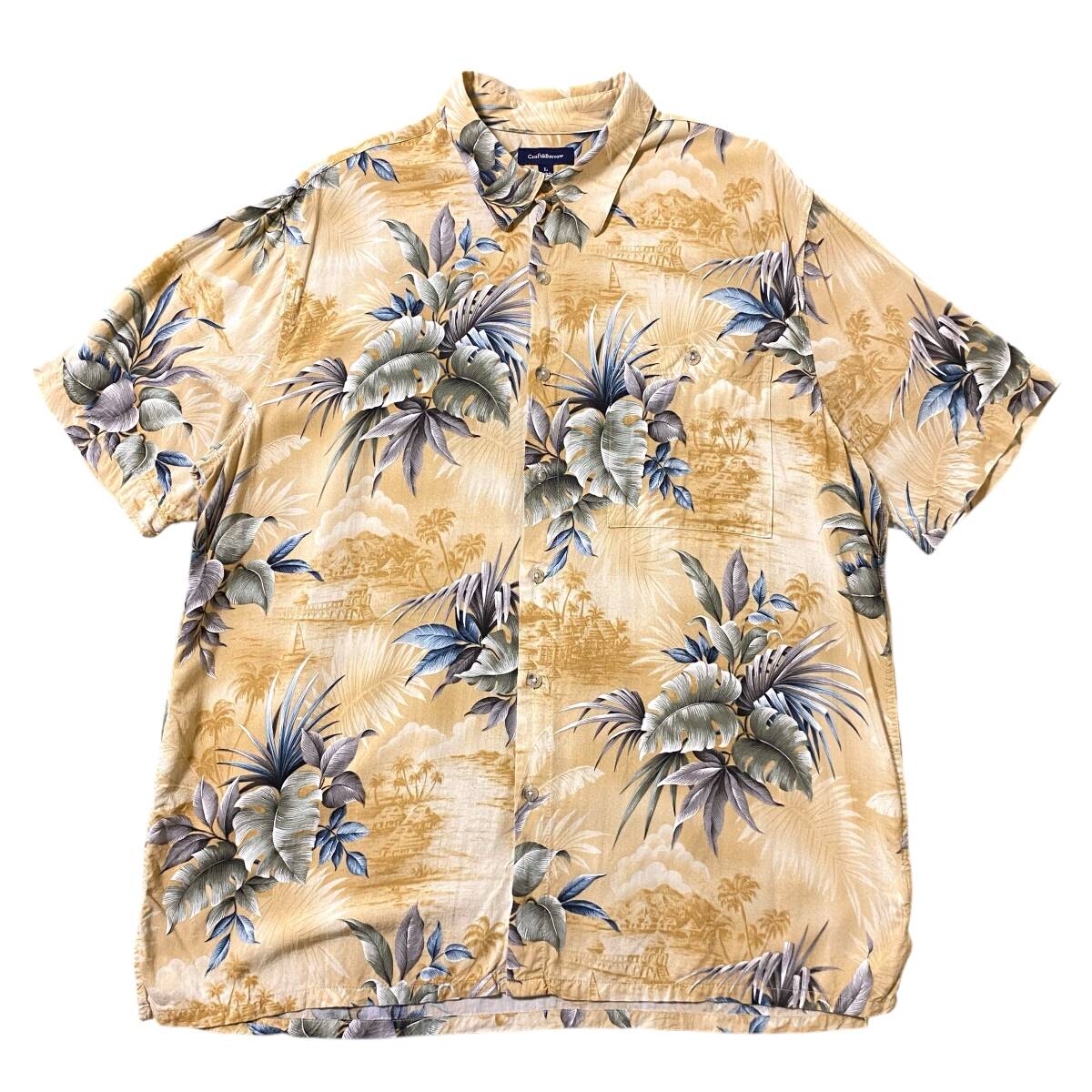 - アメリカ古着 クラフトアンドバロー アロハシャツ リーフ柄 レーヨン Lサイズ ハワイアン 【AL222】