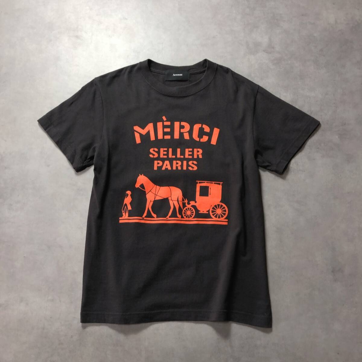> WQ479●Account PARIS:MERCI SELLER PARISロゴプリントTシャツ●S● 黒に近いグレー アカウントパリス