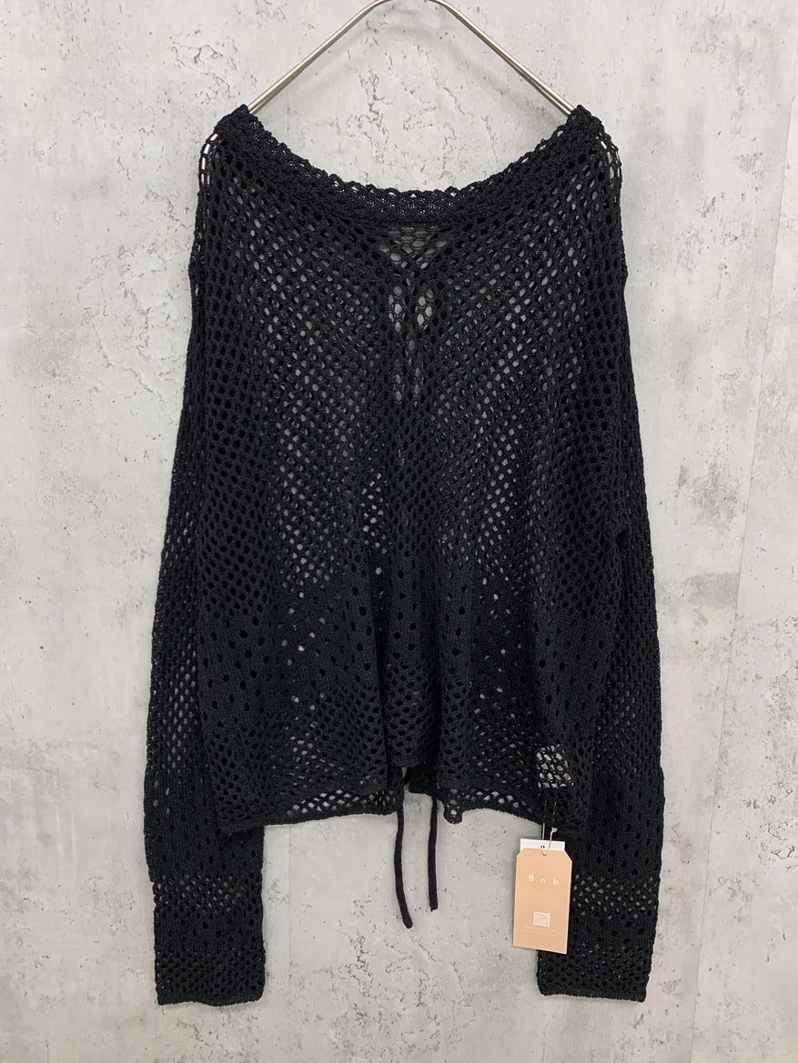 - 新品 Bab バブ 612515 バックレースアップ透かし ニット セーター sizeF/黒 ■■