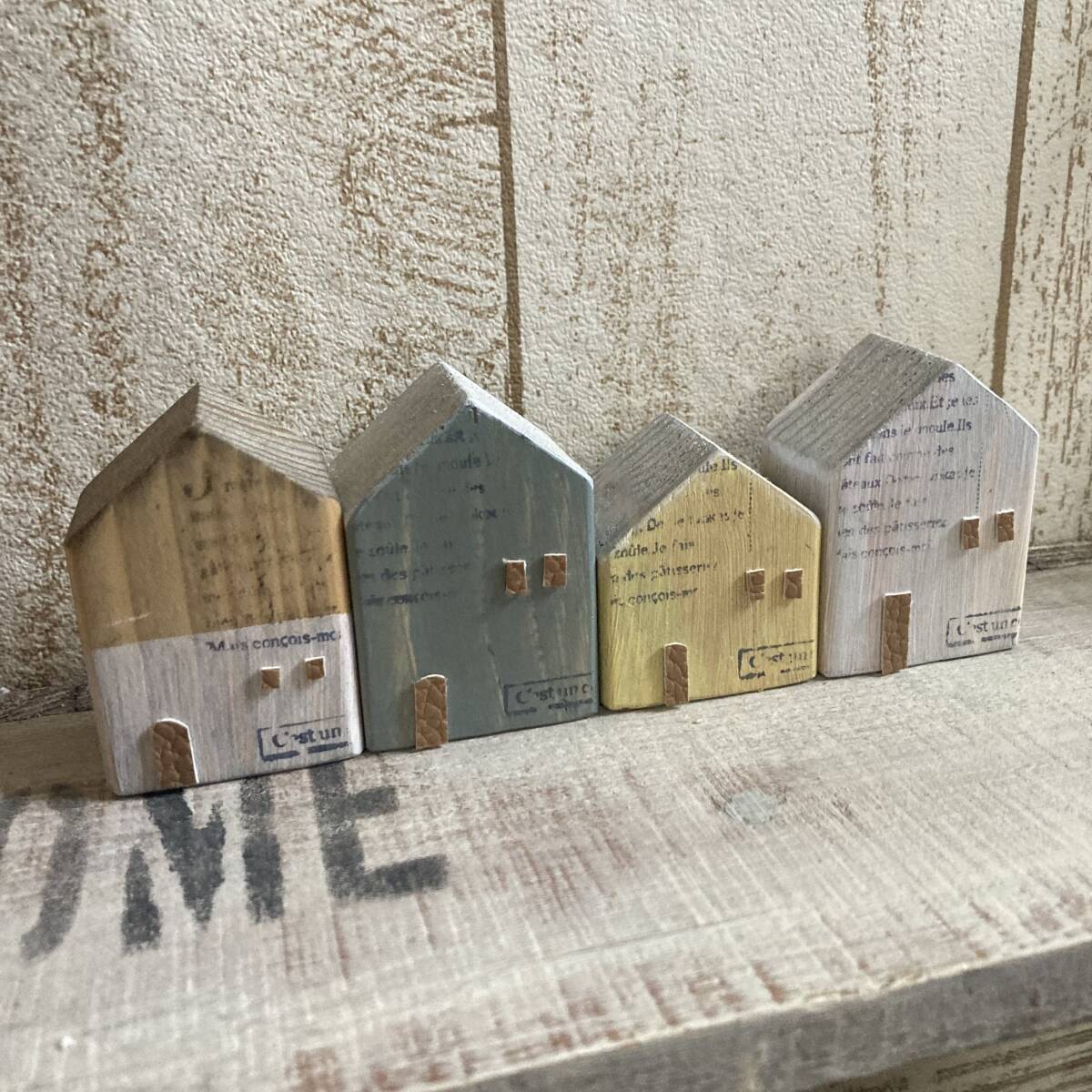 > ハンドメイド☆木のお家4点セット☆ミニチュアハウス木のおうちオブジェ.ナチュラルインテリア雑貨.置物