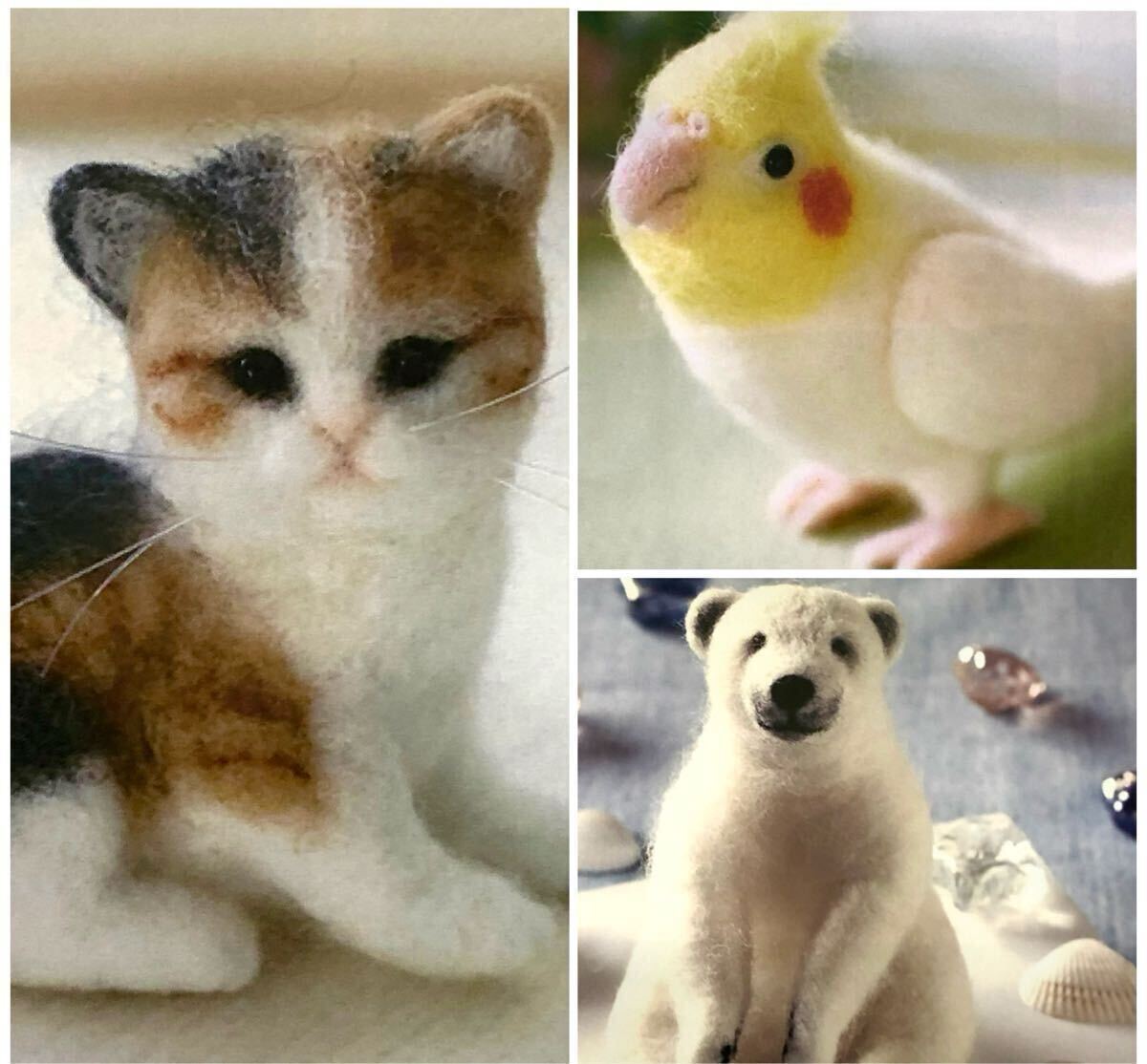 - 新品キット【3種まとめて】動きだしそうなかわいい動物 羊毛フェルト 手芸キット ハンドメイド サンフエルト 各フェルティングニードル付き