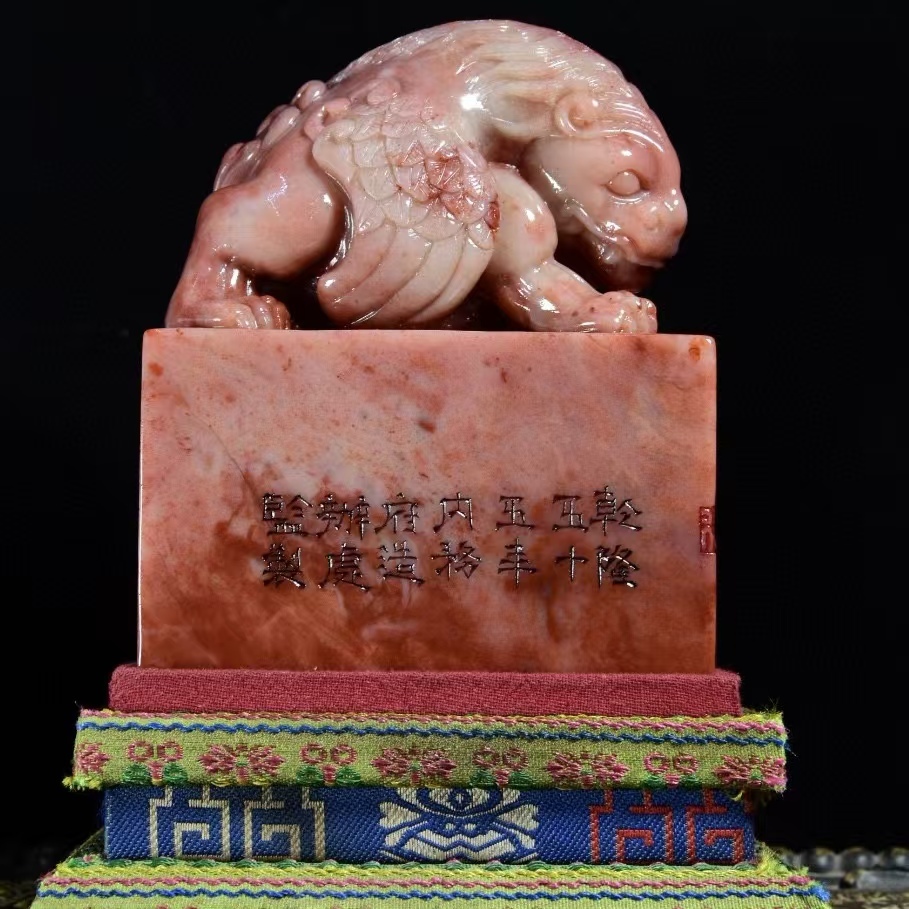 - 印章 秘藏 清代 乾隆年制 老玉 寿山石芙蓉石【山海経異獣玉璽】印 八争耄念止宝 印鑒 古印材 印鑑の方 唐物 古玉彫 天然石 古賞物 置物