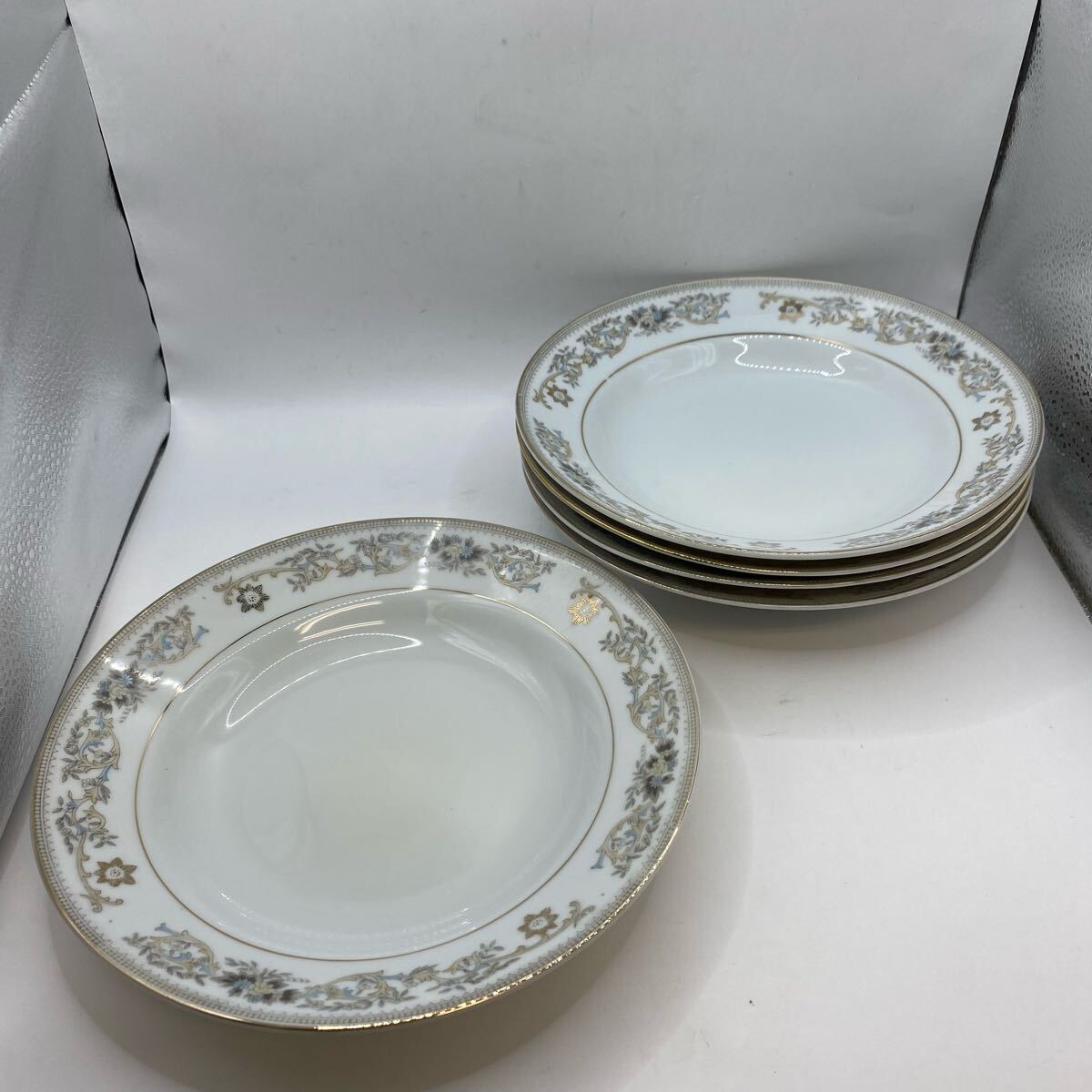> M0621702B マルエス陶器 皿 5枚セット プレート スープ皿 maruesu レトロ 洋食器 食器 アンティーク 当時物 中古品 現状品