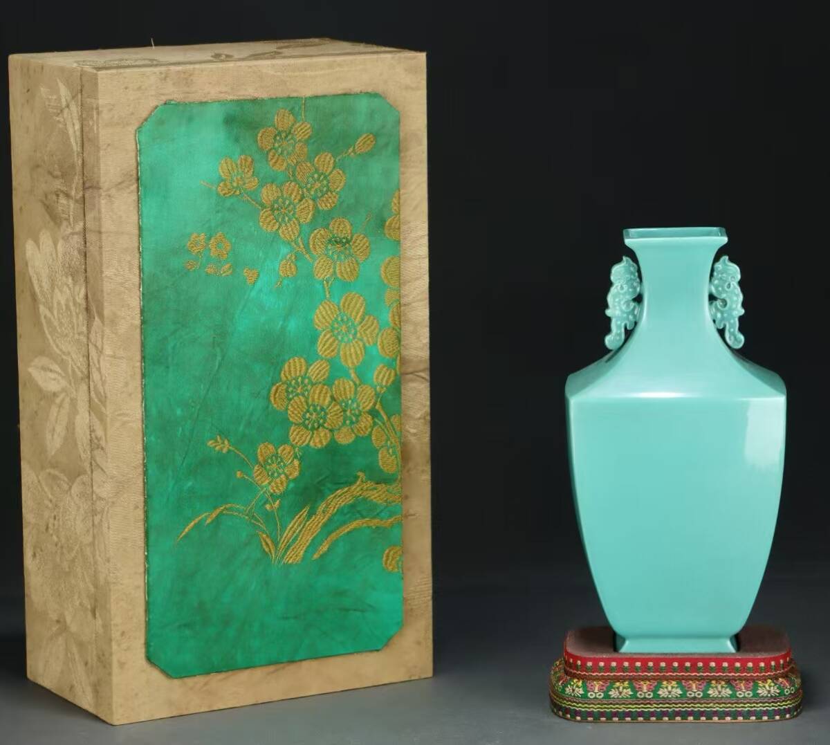 - 磁器 花瓶 秘藏 清代 乾隆年制 帝王松石緑釉双耳瓶 酒器 茶器 唐磁 染付 陶磁器 收蔵品 古美味 時代物 古美術古置物 希少珍品 中國文玩6.22
