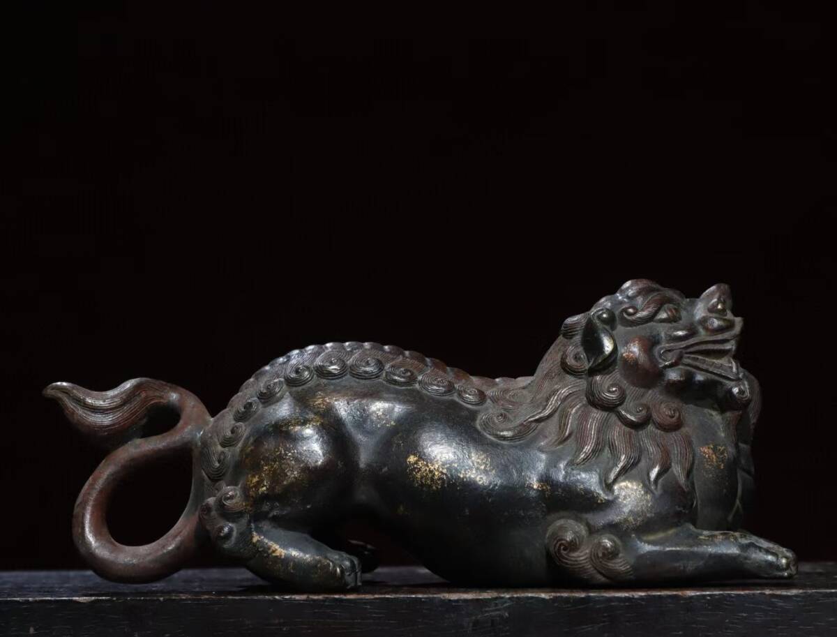 - 清代 旧蔵 チベット古寺 古銅拓金【瑞獣貅貅 銅製 銅琉金 唐物 收蔵品 時代物 古美術 古置物 希少珍品 供養品 文房具 仏教6.23