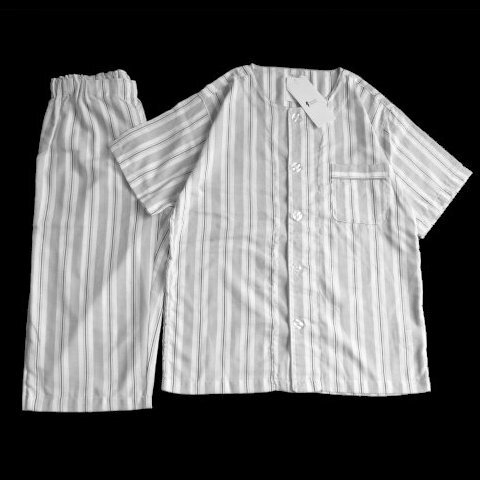 > 新品 メンズ パジャマ M 半袖 7分丈ズボン Smith & stricker DRY 介護 大きいボタン チェック 紳士 寝巻 ルームウェア ナイトウェア グレー