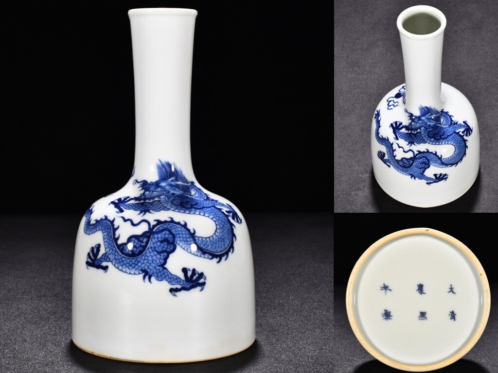 > TB258■中国古玩 唐物 清康熙年製 青花龍紋搖鈴尊 時代物 極上品■■高さ18.5cm・直径10.5cm■