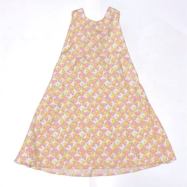 - ☆二点落札で送料無料 2A48【美品】FENDI キッズ 高級 FFロゴ ドレスワンピース 6A モノグラム柄 ピンク×イエロー 伊製 フォーマル