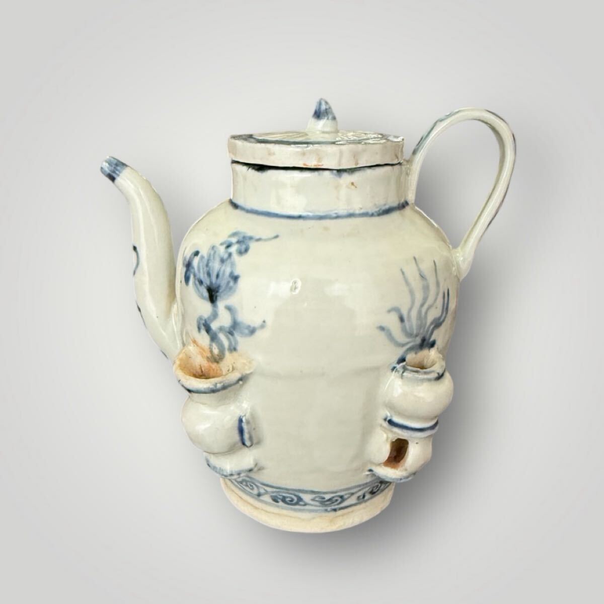 - 【NEOJI】中国古美術 染付 青花花卉文水注 蓋付水注