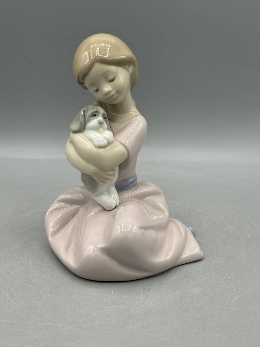 > * 国内発送 リヤドロ ナオ 女の子 子犬 1451 フィギュリン スペイン 陶器 置物 陶磁器 陶磁器人形