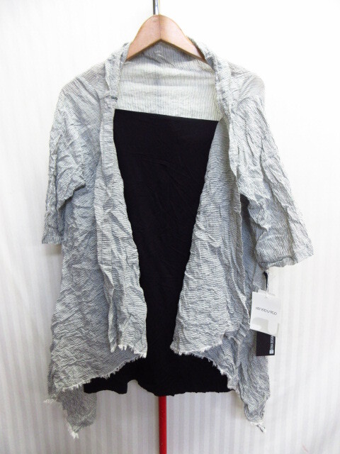 > 未使用 センソユニコ XD XENIA DESIGN しわ加工シャツ レイヤードデザイン SIZE40 グレー黒 ブラウス カットソー 半袖シャツ 06193