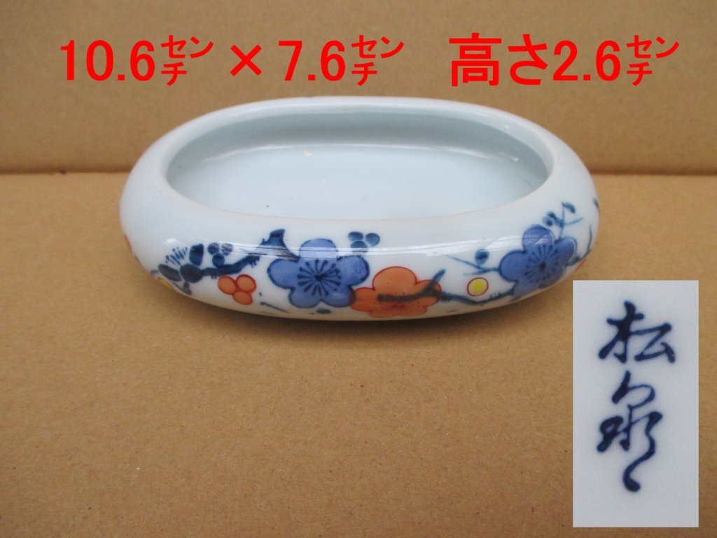 - 861 松泉? 豆鉢 小判型 薄鉢 小鉢 高さ2.6センチ 中古品に付き使用感アリ、画像にてご確認願います