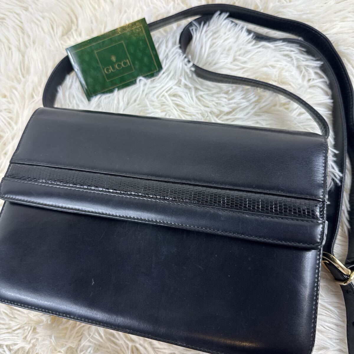 - GUCCI グッチ レザー ショルダーバッグ オールド 黒 ブラック