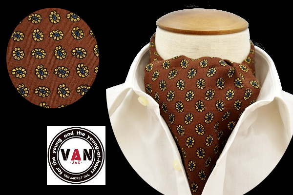 > N-3045★送料無料★VAN -JAC- ヴァンヂャケット★80s 90s 当時物 ブラウン茶色 花柄 小紋柄 クラバット スカーフ ネクタイ