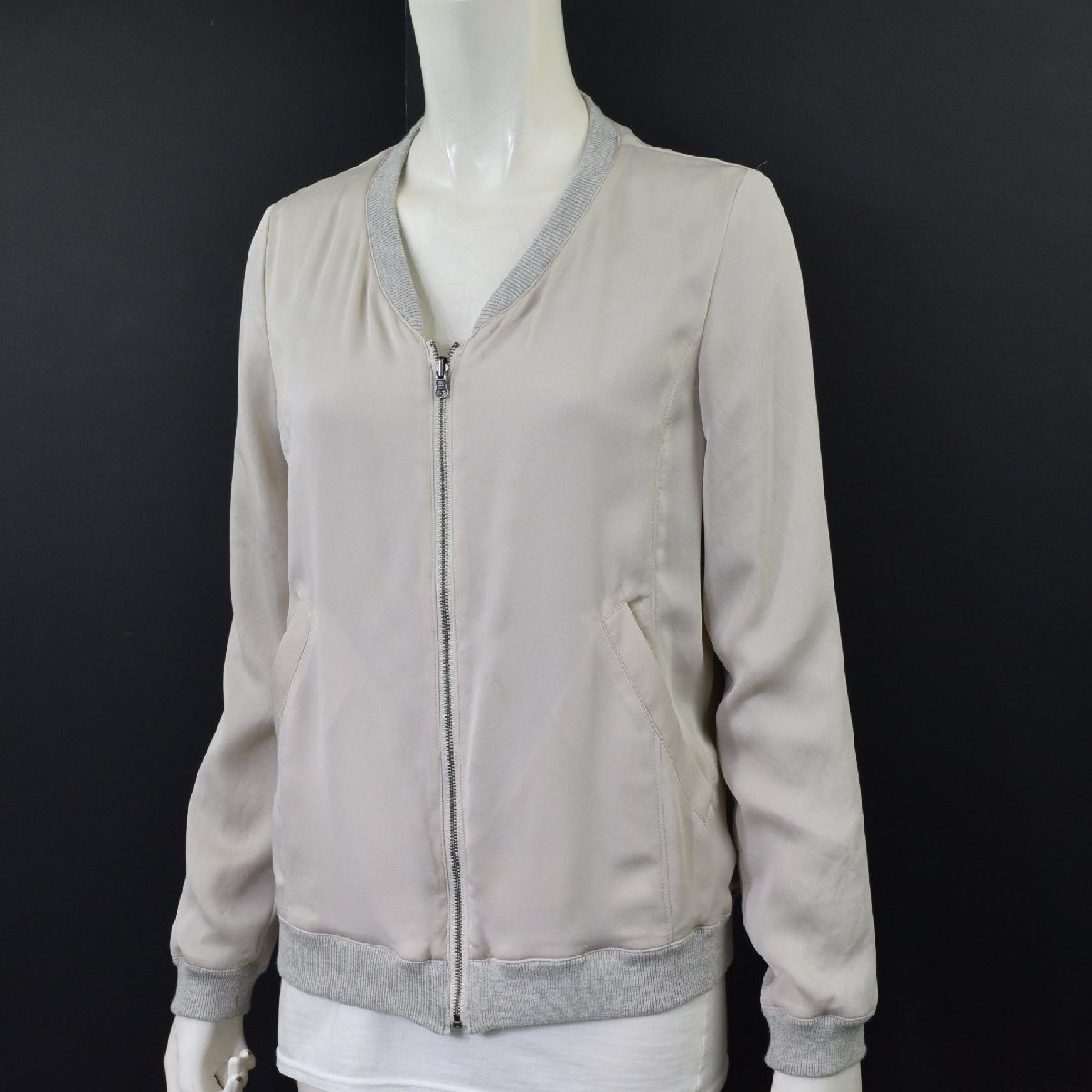 > 5000-KA00102★ロートレ・アモン★冷房対策に♪ リバーシブル ジップジャケット 38 つるつるベージュ&グレー柔らかコットンレーヨンニット