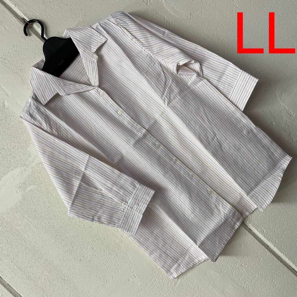 - LLサイズ綿100%肩タック使い七分袖前ボタンシャツブラウス ピンク オレンジ