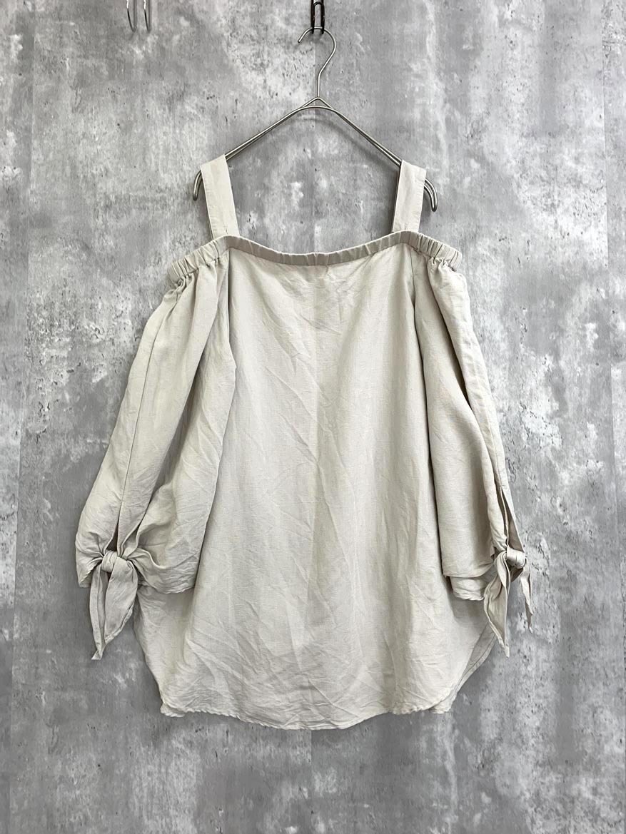 > ゆうパケットOK BABYLONE バビロン 麻 レーヨン オフショル 袖リボン ブラウス シャツ size38/ベージュ ■◇ ☆ feb3 レディース