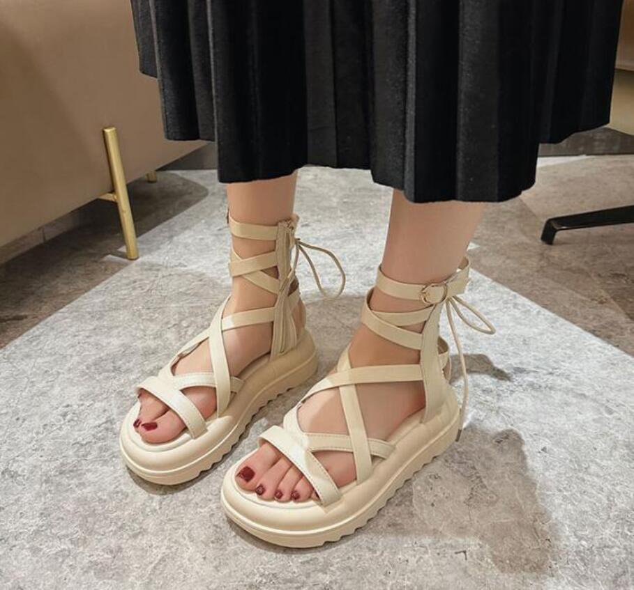 - 人気推薦/ ビーチサンダル サンダル ローマブール グルカサンダル 厚底クッションソール 編み込み婦人靴 コンフォートサンダル/ベージュ
