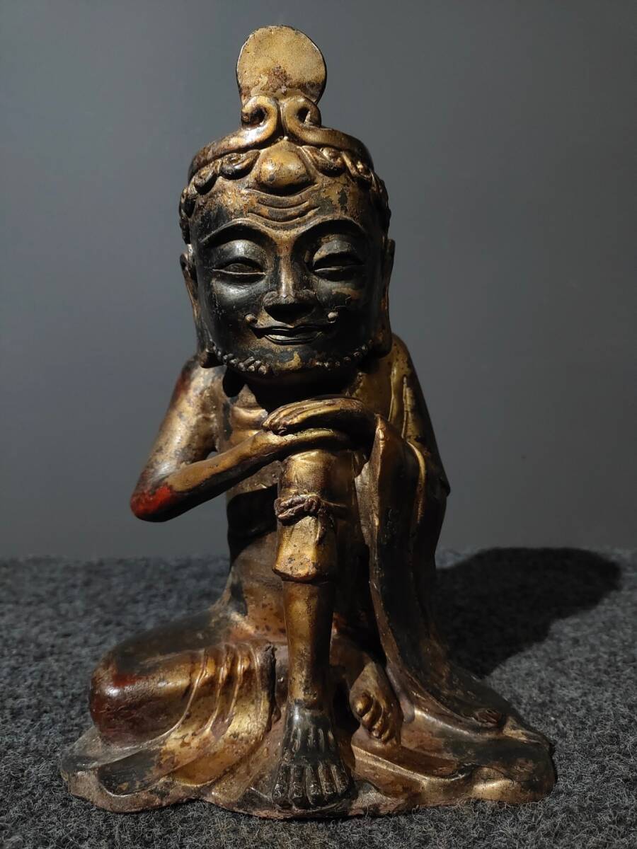- 蔵友旧蔵出 銅製 泥金 沈思羅漢像 希少珍品 貴重品 置物 古賞物 密宗密教 供養品 仏教美術品