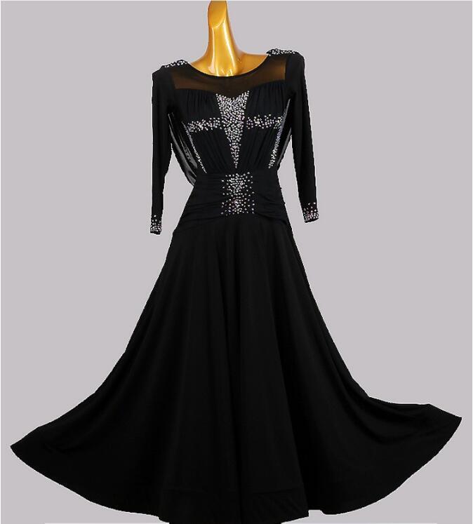- 新入荷 上質新品 レディース社交ダンス衣装 魅力サイズセミオーダードレス モダンレッセン練習用高品質ワンピース 石飾 ブラック