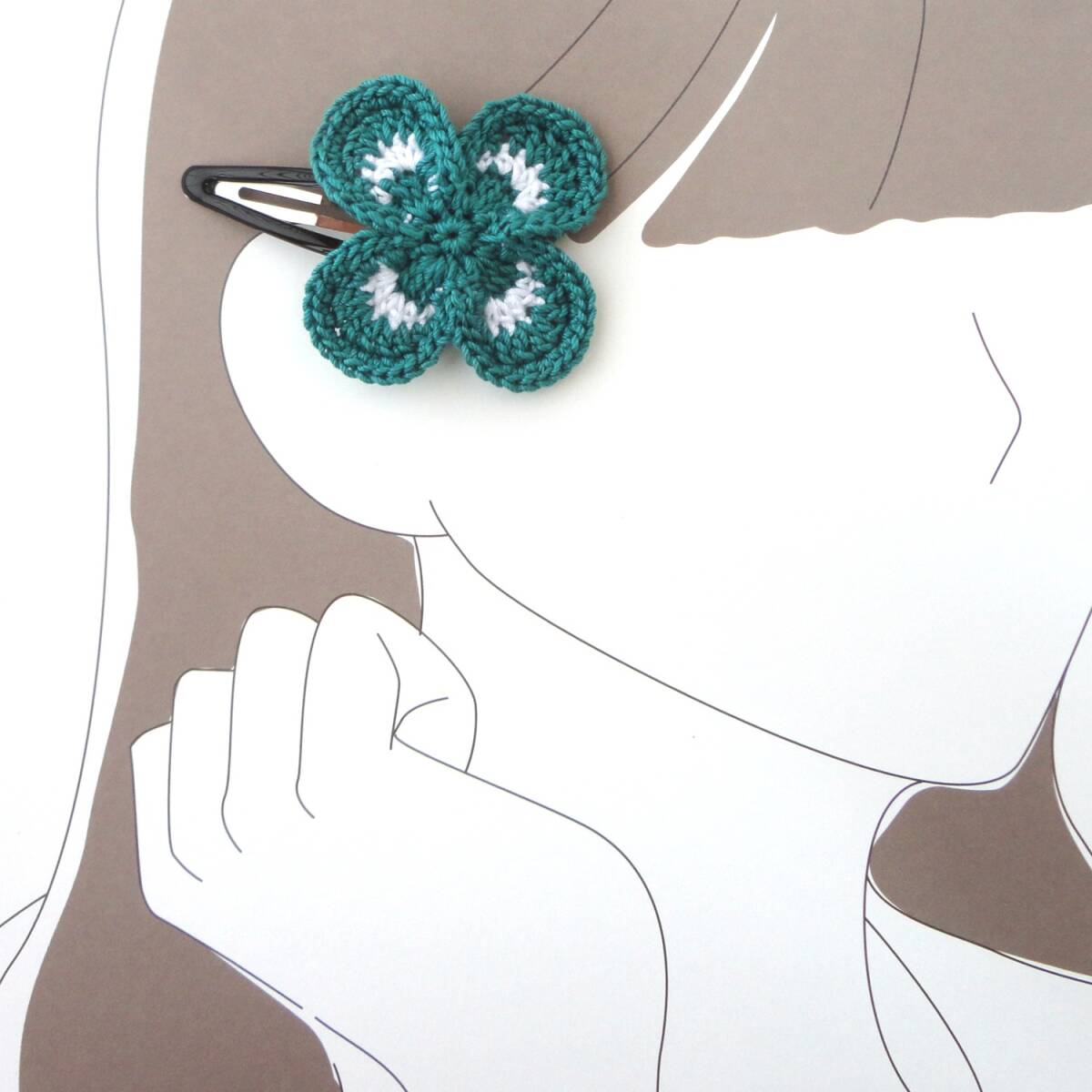 - 幸せはこぶ?!四葉のクローバーのヘアピン*パッチンEGR*レース編*ハンドメイド*b847
