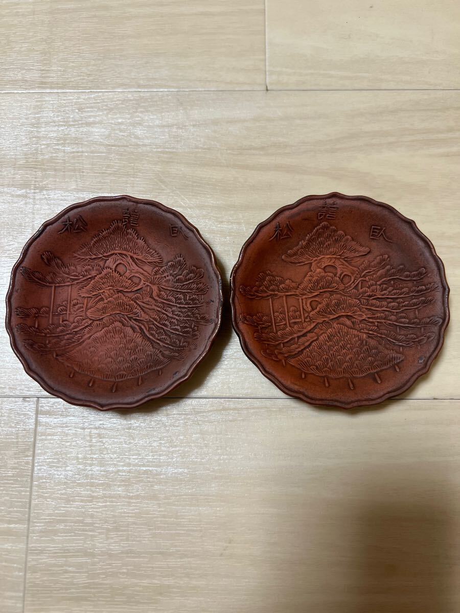 - 備前 細工浮彫 臥龍松文 小皿 豆皿 茶事 骨董品 時代物 型押し 江戸 明治 JAPAN