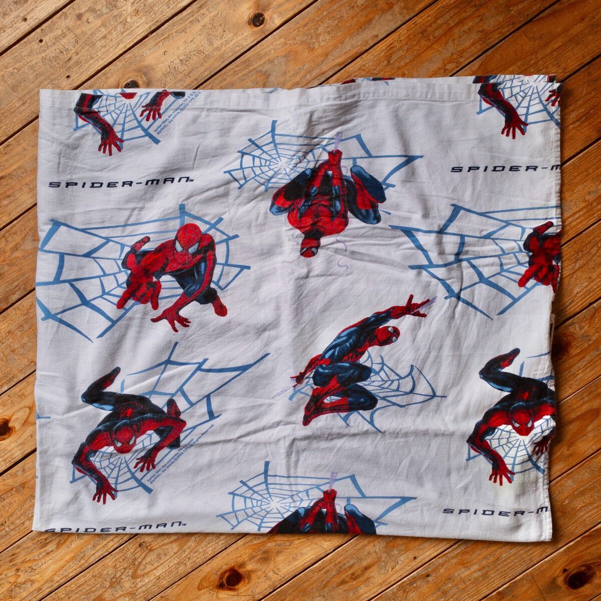 - USAヴィンテージ ベッドシーツ スパイダーマン アメコミ リメイク生地 素材 マーベルコミック フラットシーツ アメリカ仕入 B2856
