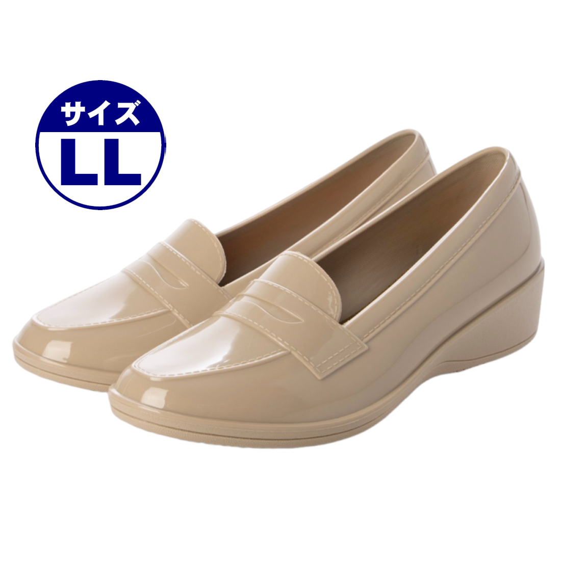 - レディース エナメル調 レインローファー レインシューズ ラウンドトゥ ローヒール インソール 晴雨兼用 完全防水 防滑底 25058-grg-ll