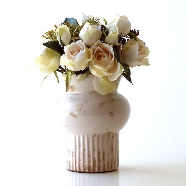 - 花瓶 おしゃれ 陶器 アンティーク レトロ 花器 フラワーベース セラミックベース ホワイト 送料無料(一部地域除く) kan8280