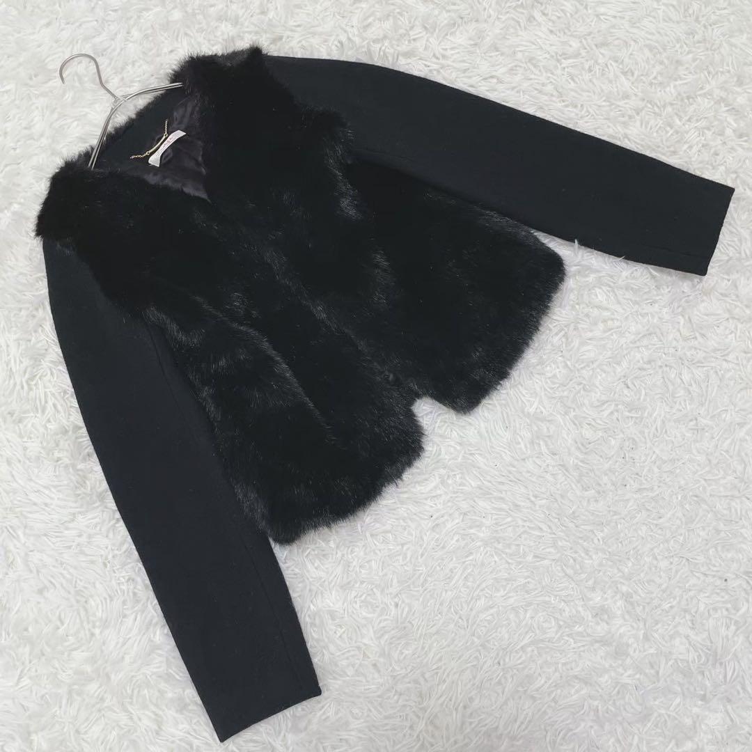 - 日本製 『ルクスルフト』 (36) ファー切替ジャケット フェイクファー 上品