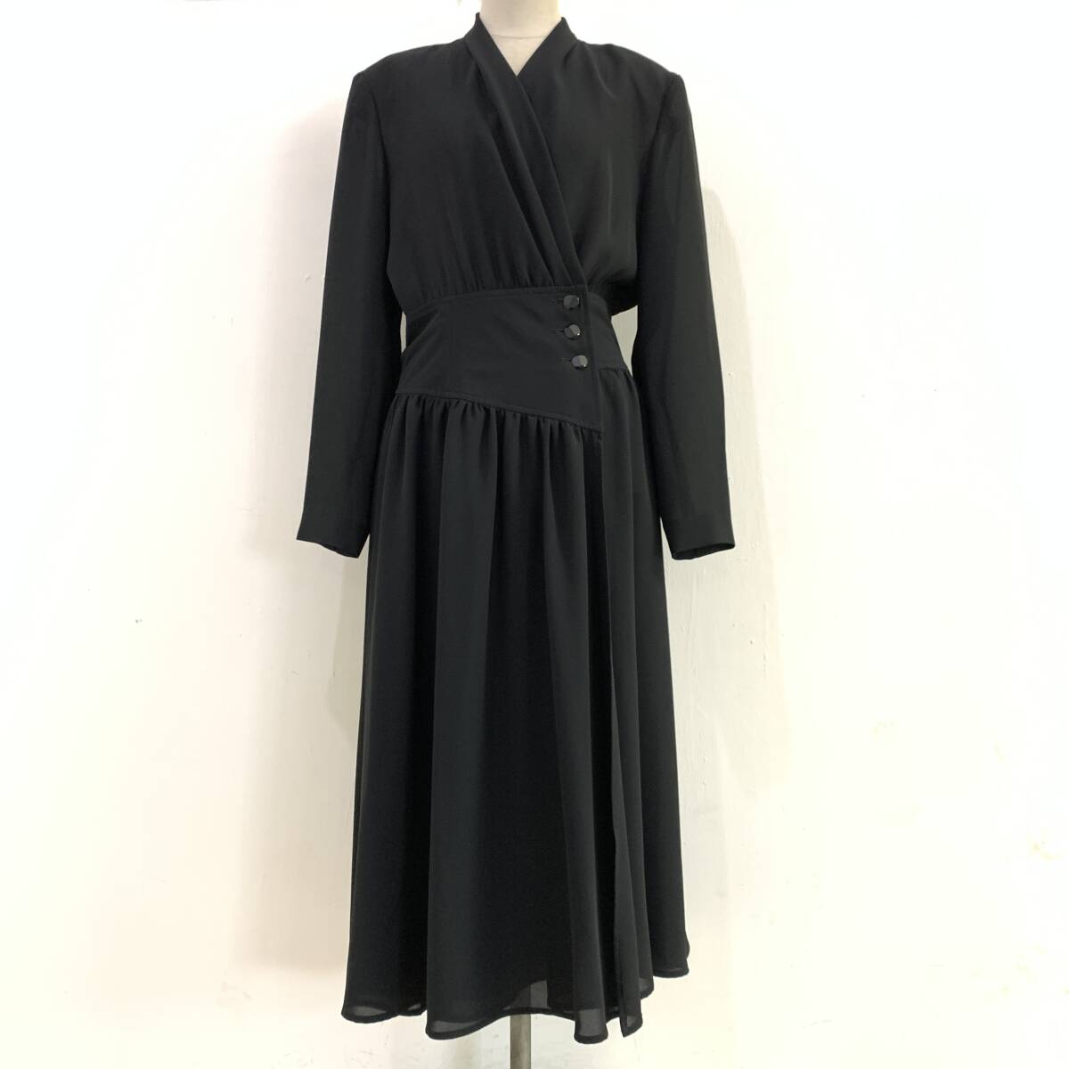 - ☆LORIS AZZARO ロリスアザロ 長袖ロングワンピース カシュクール ブラックフォーマル ブラック サイズ9 古着【送料一律/同梱可能】F