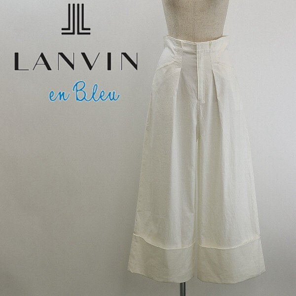 - 新品◆LANVIN en Bleu ランバン オンブルー ストレッチ リネン混 タック ハイウエスト ワイド パンツ 白 ホワイト 36