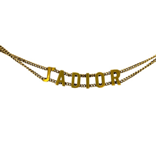 > Christian Dior ディオール J’ADIOR 2連 チェーン チョーカー ネックレス アンティークゴールド メタル