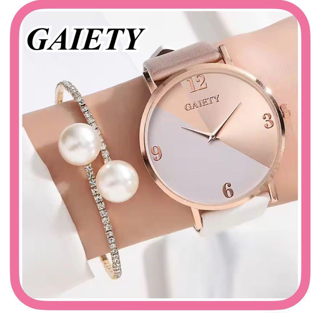 - GAIETY クォーツ 腕時計 バイカラー パールブレスレットセット
