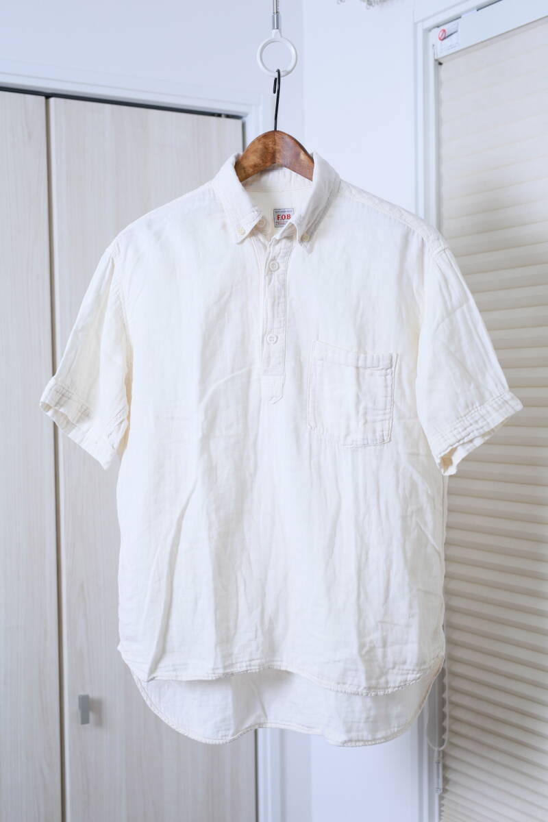 日本製F.O.B コットン生地ハーフボタン半袖BDシャツ