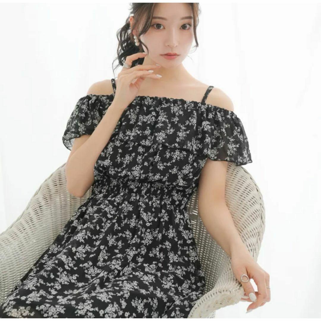 - 【新品】ウエストシャーリングマキシワンピース 花柄 ブラック M