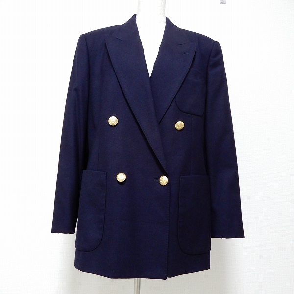 - #anc バーバリー BURBERRY ジャケット ブレザー 13BR 紺 ダブル 金ボタン ヴィンテージ 大きいサイズ レディース [940810]