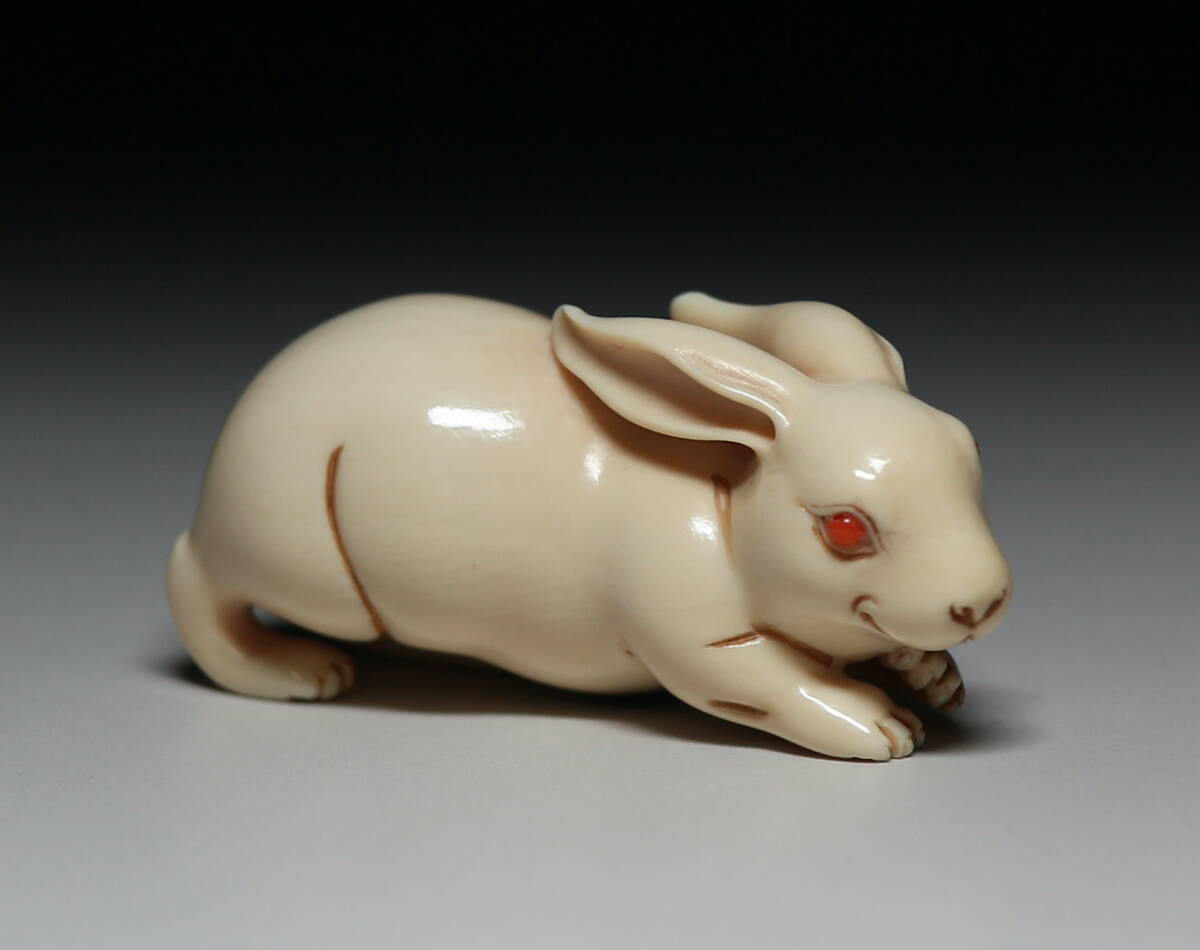 - 【心】k447 根付 白い兔 なんとも可愛い!