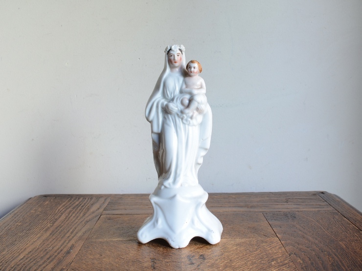 - アンティーク家具 雑貨 キリスト教 聖母子像 ヴィンテージオブジェ アンティークマリアモチーフ 陶器オブジェ (H18cm)