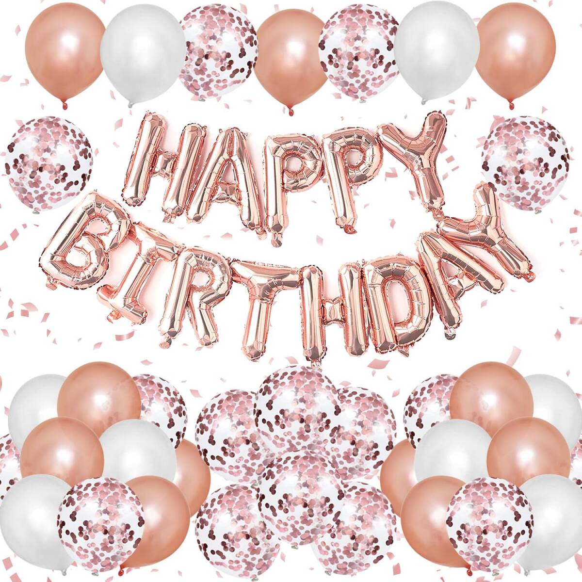 - Lausatek バルーン 誕生日 風船セット HAPPY BIRTHDAY バースデー 紙吹雪風船 コンフェッティ 両面シール リボン付き ローズゴールド
