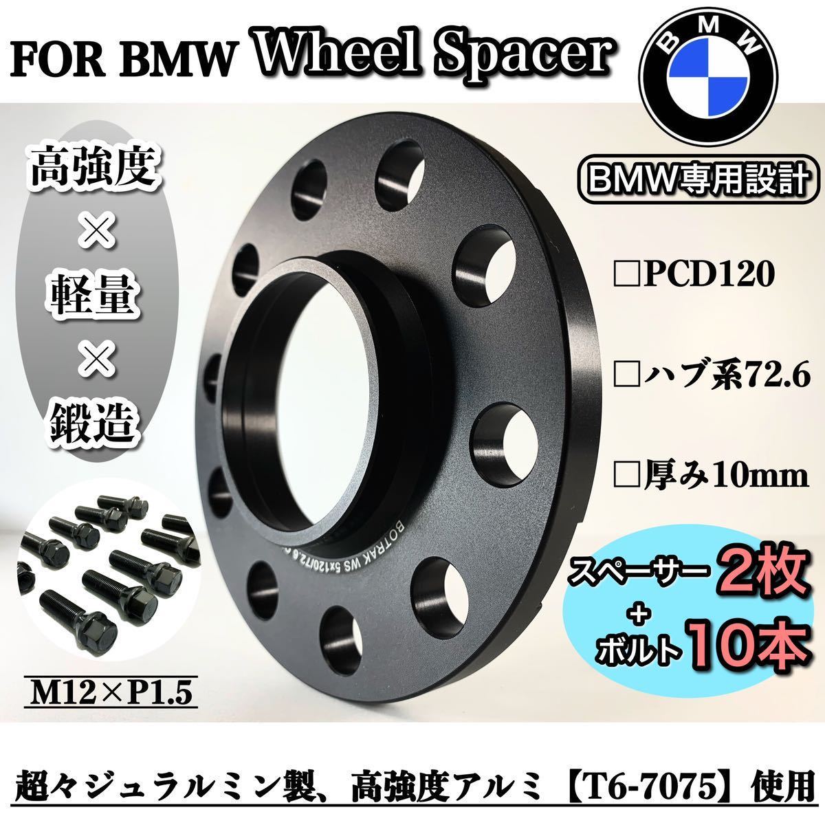 > BMW専用 ワイドトレッド ホイールスペーサー 10mm ハブリング付き PCD120 72.6 M12 P1.5ボルト付きE82 E87 E46 E90 E91 E60 E84 E85