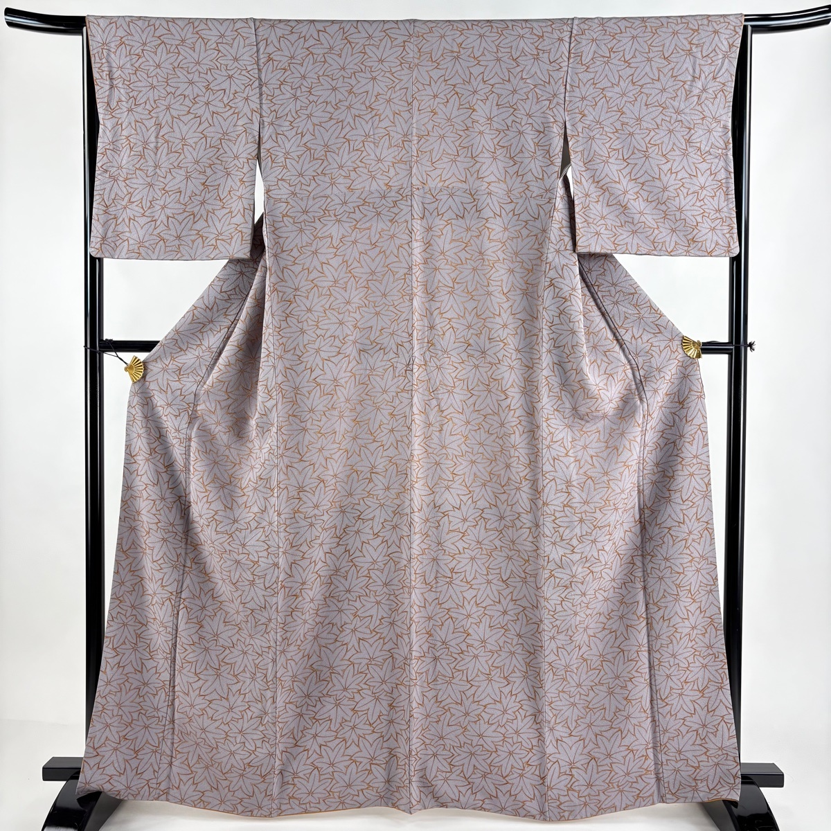 - 小紋 身丈165cm 裄丈64.5cm M 袷 楓 灰紫 正絹 美品 秀品 【中古】