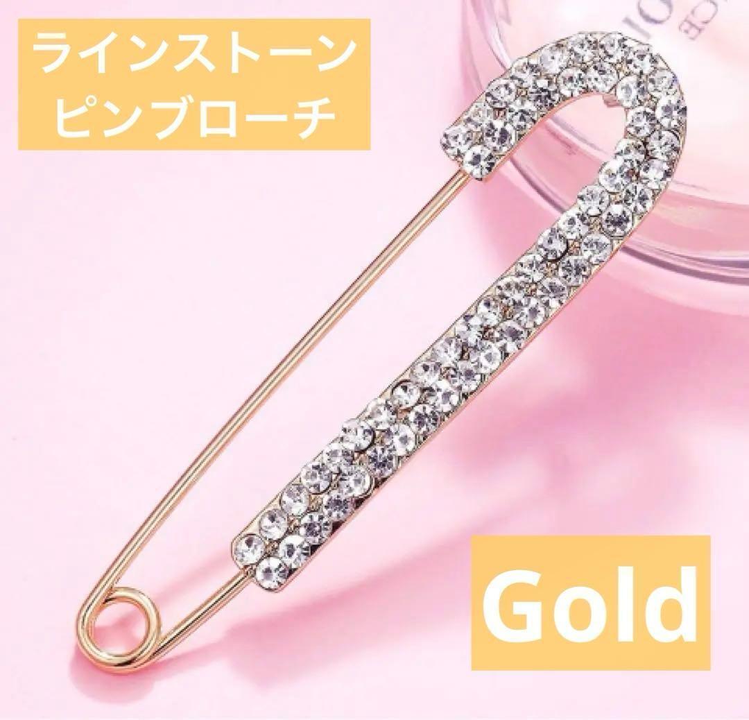 - 【GOLD】ラインストーン ピンブローチ エレガント ワンポイント ゴールド