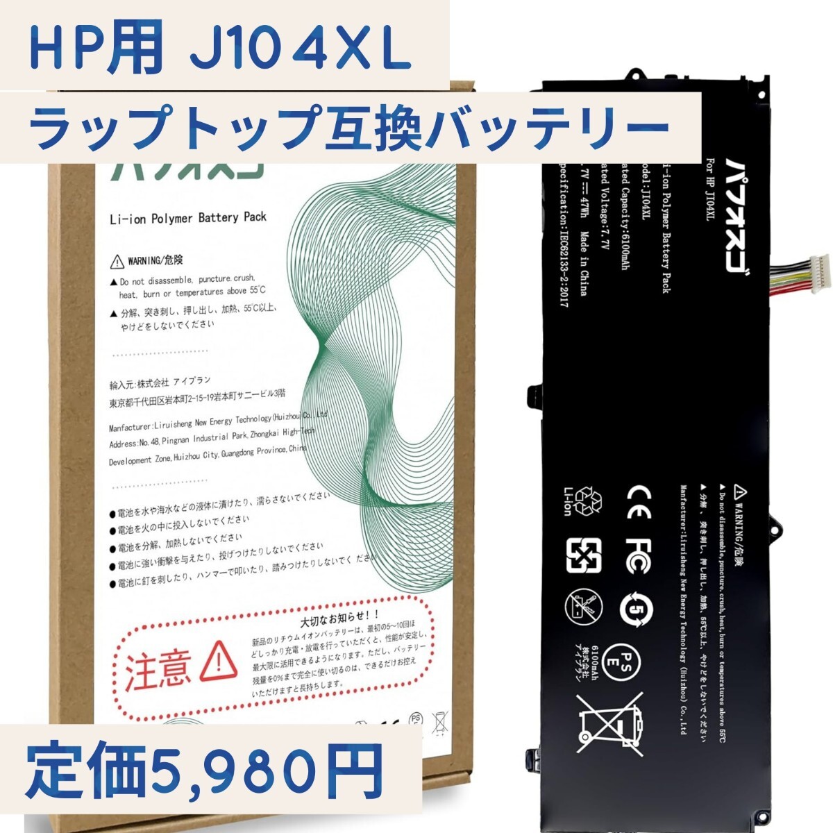 - 新品☆定価5,980円 パフォスゴ HP用 J104XL ラップトップ互換バッテリー 交換用 HP Elite x2 1012 G2/x2 1012 G2-1LV76EA 6100mAh 互換品