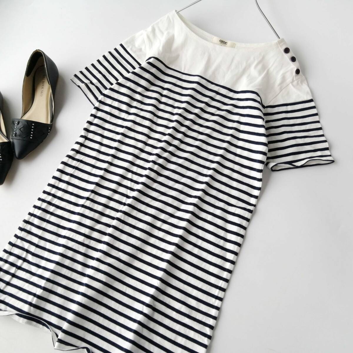 > OZOC オゾック ㈱ワールド レディース♪半袖Tシャツワンピース サイズ38 ミニ ボーダー柄 250626nl【4点同梱で送料無料】
