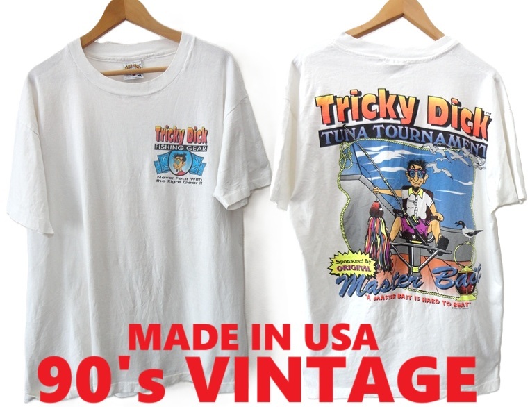 > 90's ヴィンテージ/USA製/Tricky Dick's:トリッキーディックス/コンドームetc.. エロプリント Tシャツ/ホワイト/XLsize/1993年製造