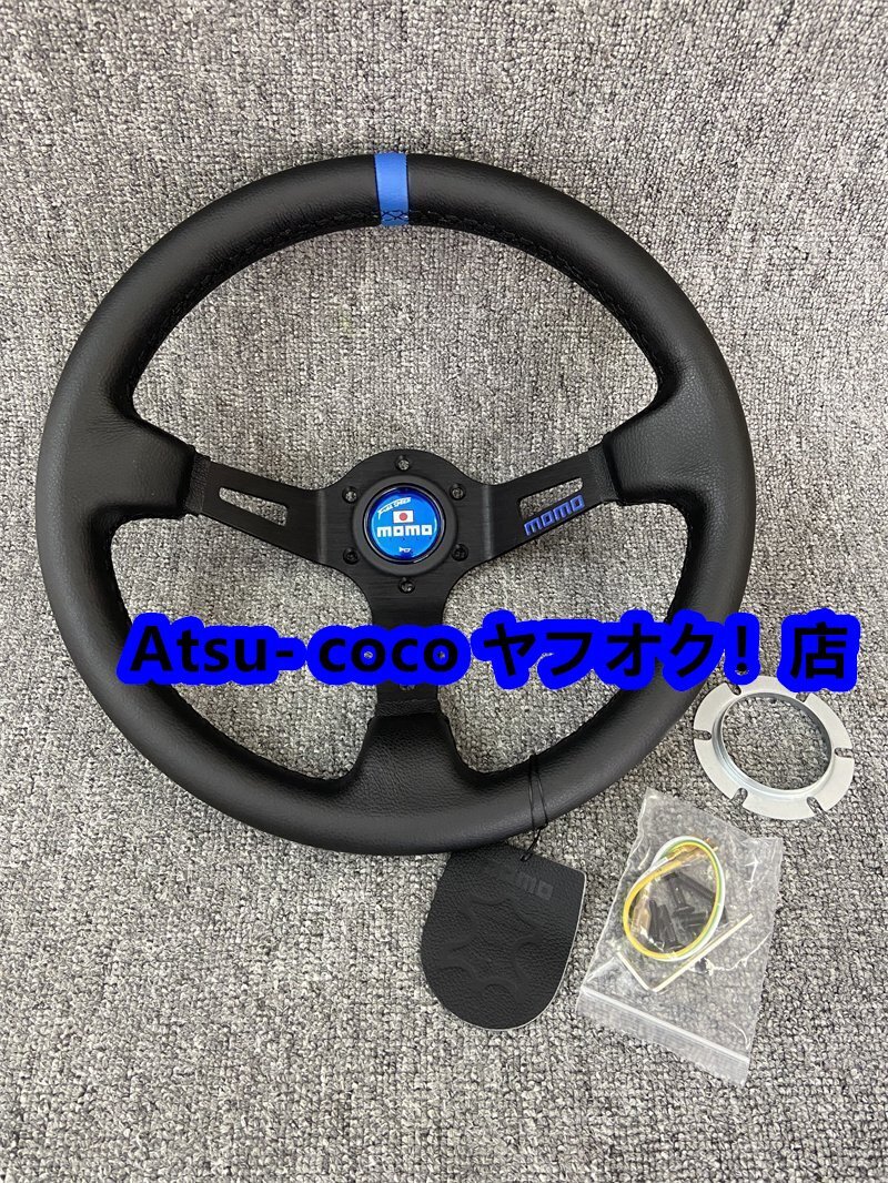 > 新品 13インチ レザー レーシングステアリングホイール blue 320CM 汎用 クスステア リングホイール