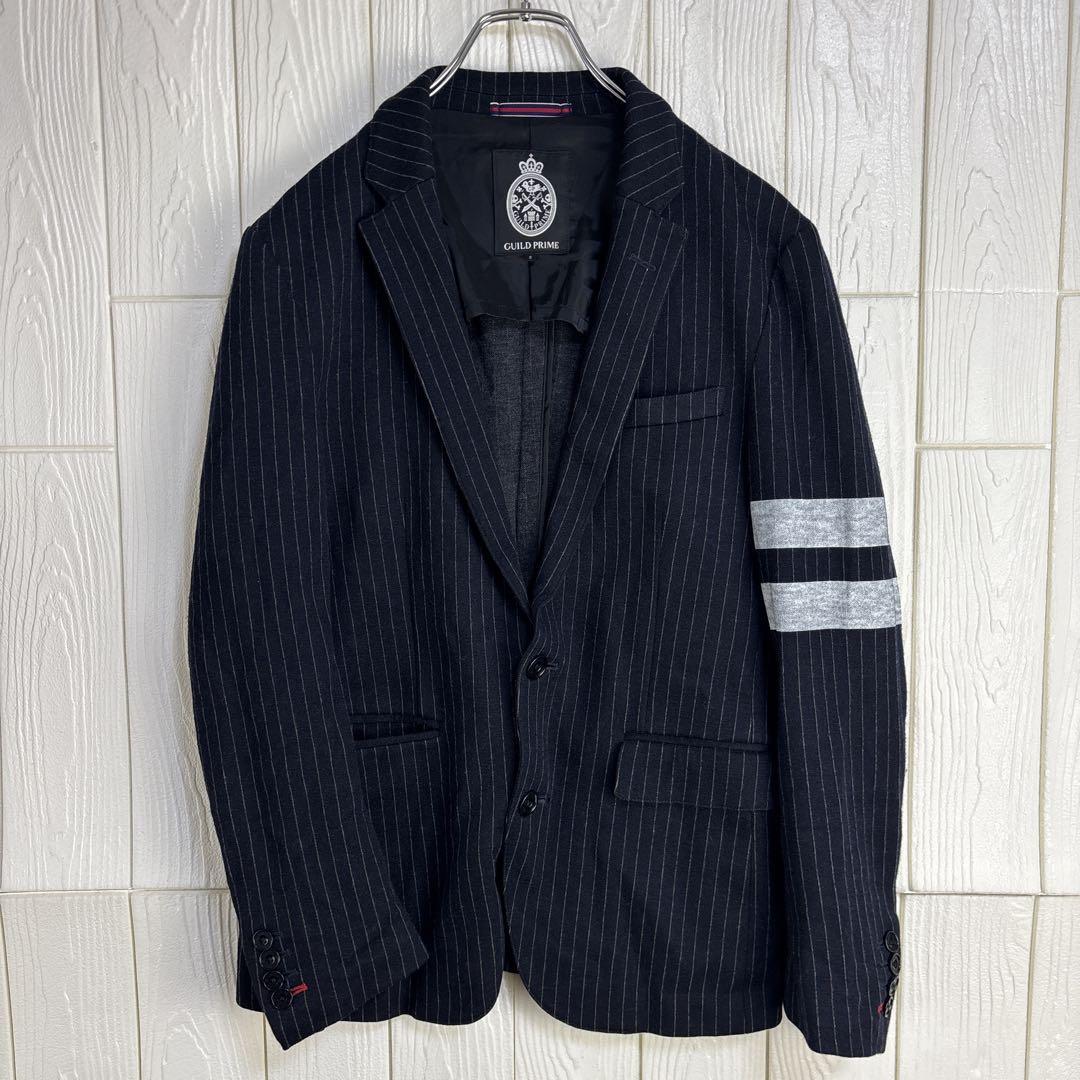 - GUILD PRIME ネイビー ストライプ テーラードジャケット S