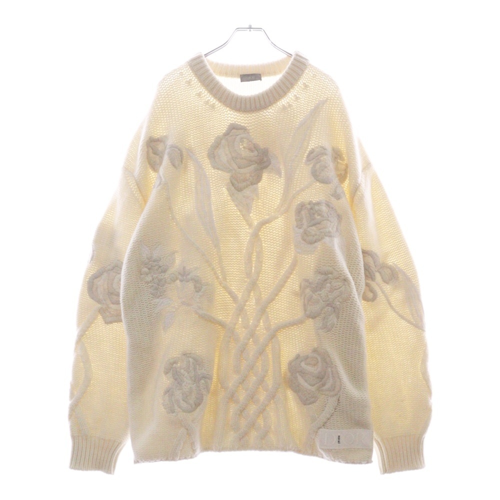 - Christian Dior クリスチャンディオール ×sacai 22AW サカイ ローズモチーフ 刺繍 ニットセーター 長袖 オフホワイト XL 213M652AT336